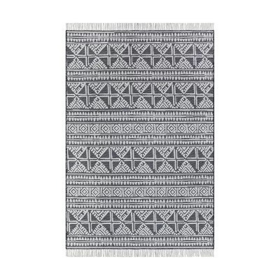 Bring comfort and style to your seating area with this Tasseled Outdoor Rug from Project 62™. Featuring an allover diamond print with side tassels in a neutral tone, this outdoor area rug adds comfort underfoot while blending in easily with your existing decor. Its construction and latex backing make it a great addition to higher-traffic areas, and you can simply hose clean with water for ease of maintenance.